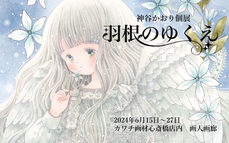 神谷かおりさん:千葉県在住の作家。2020年より透明水彩を使用した作品を展示会に出展。2024年にカワチ画材「心斎橋・画人画廊」で個展「羽根のゆくえ」を開催した。同年、HUIONイラコン2024第1回にて優秀賞を受賞。「透明水彩でふわりと自分の好きな世界を描いています。作品を通して何かを感じてもらえる作品を描いていきたいと思います」