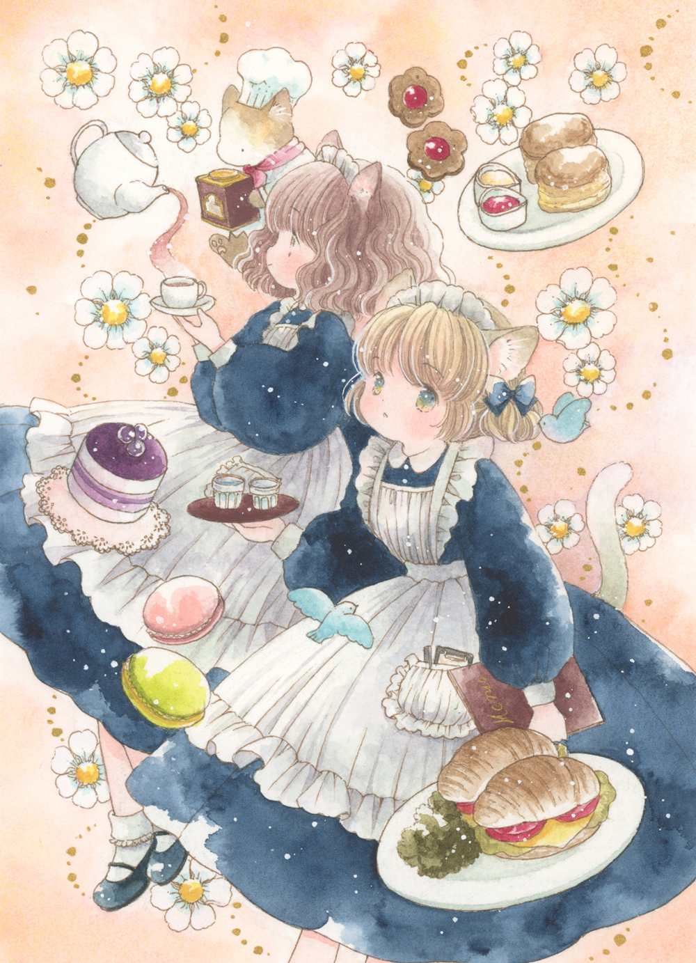 ※花びらやエプロンのレース、ポケットのふくらみなど、質感や動きの表現にも注目してみてください。